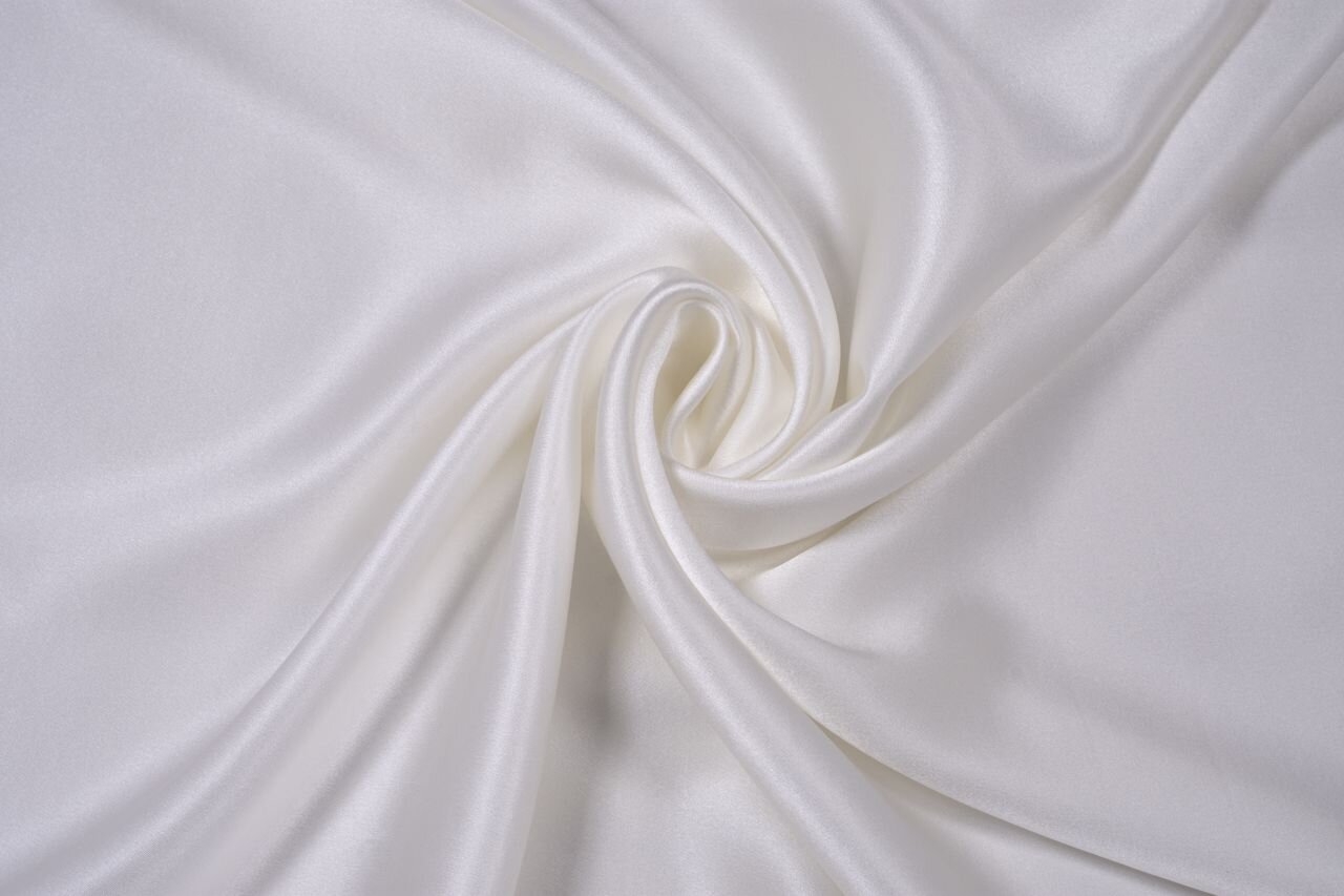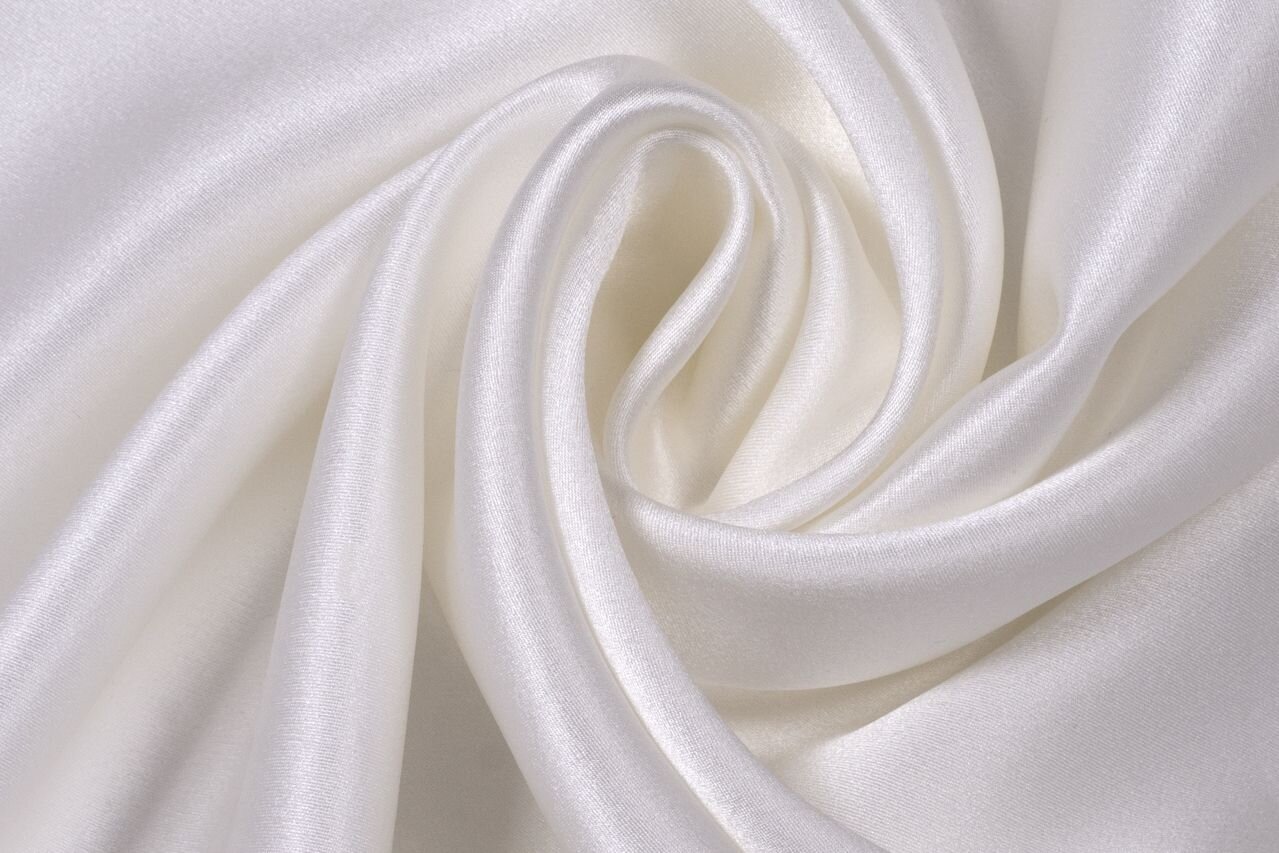 Splývavá, lesklá látka zvlášť vysoké gramáže z přírodního hedvábí v neutrálním odstínu bílé. Vhodná na řasené a splývavé modely a šikmý střih. Skutečně luxusní materiál, který neprosvítá a neproznačuje se. Hodí se na slavnostní a svatební šaty.