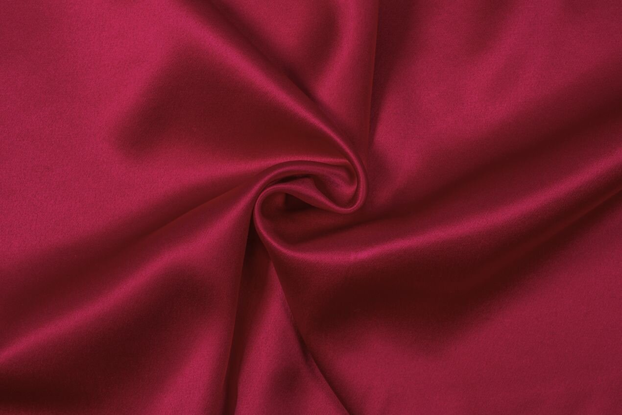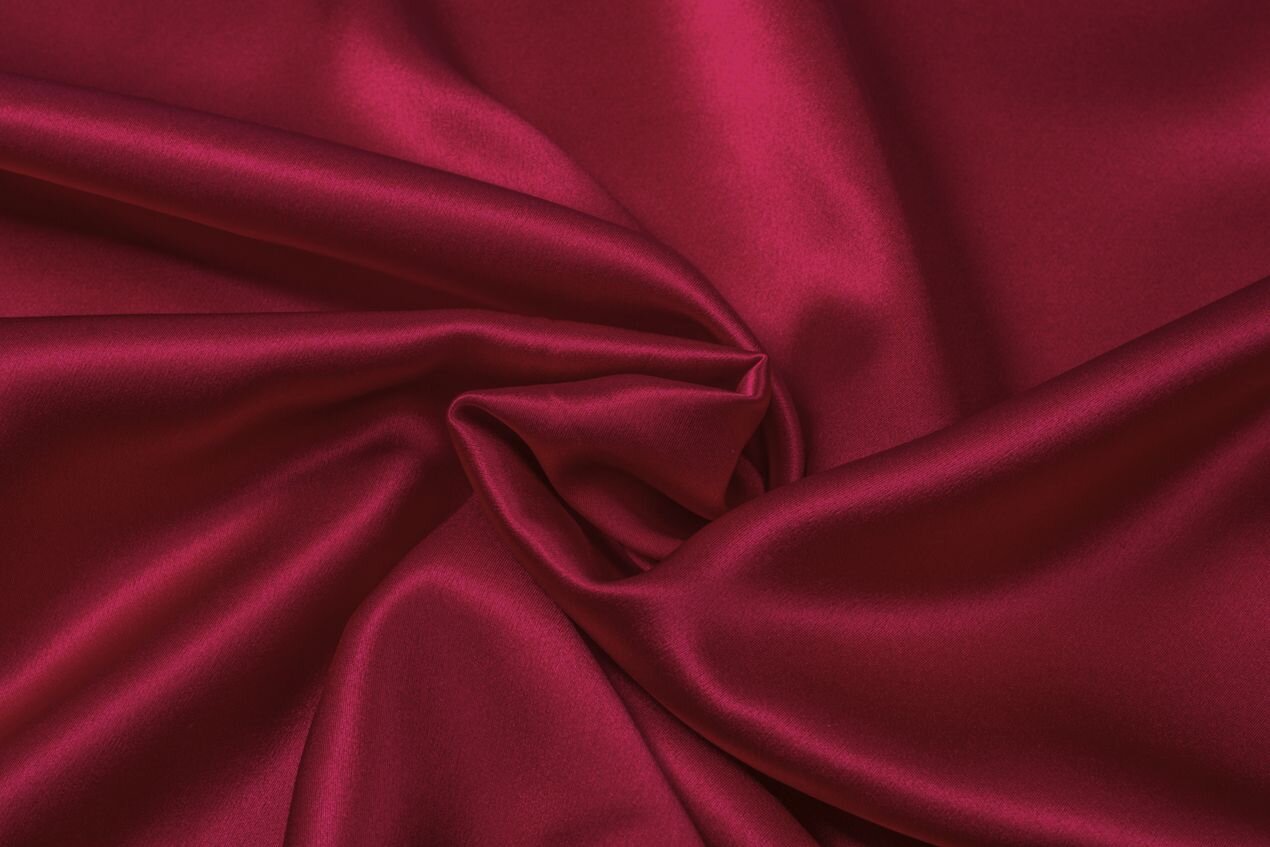 Splývavá, lesklá látka zvlášť vysoké gramáže z přírodního hedvábí v rudé barvě. Vhodná na řasené a splývavé modely a šikmý střih. Skutečně luxusní materiál, který neprosvítá a neproznačuje se. Hodí se na slavnostní a svatební šaty.