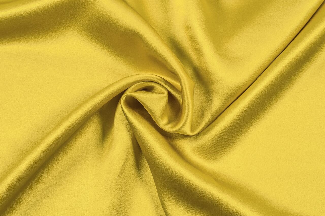 Splývavá, lesklá látka zvlášť vysoké gramáže z přírodního hedvábí ve zlaté barvě. Vhodná na řasené a splývavé modely a šikmý střih. Skutečně luxusní materiál, který neprosvítá a neproznačuje se. Hodí se na slavnostní a svatební šaty.