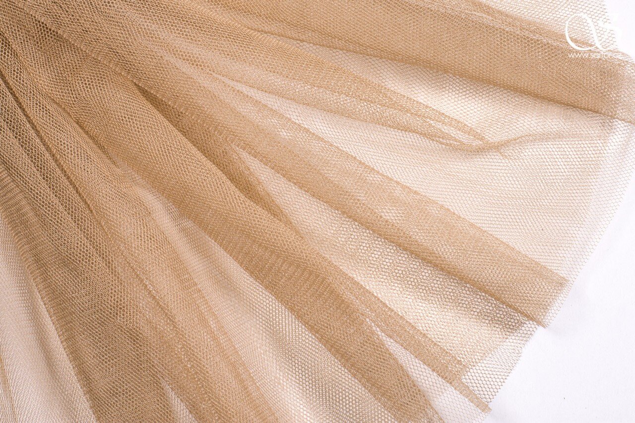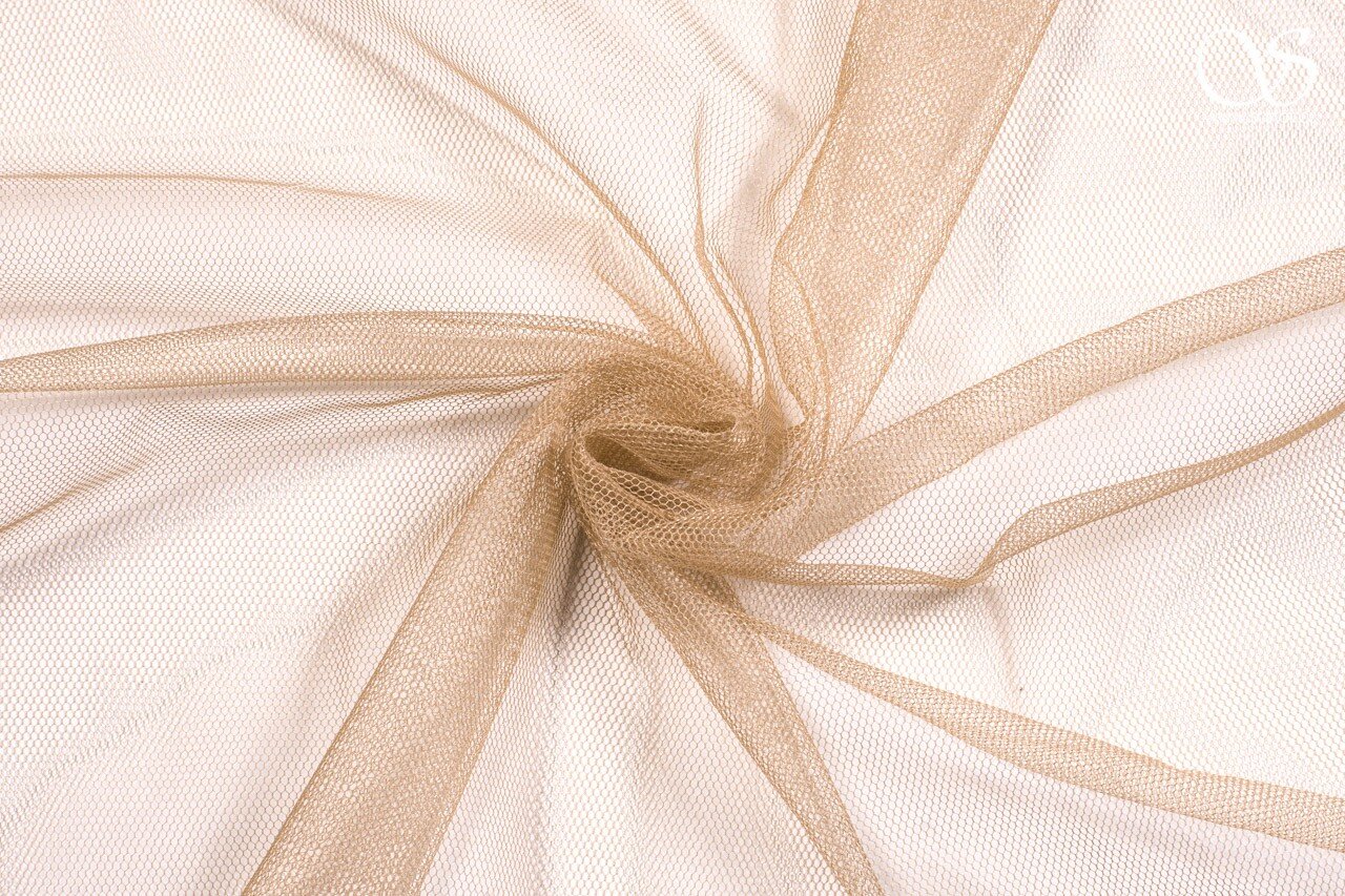 Měkký, splývavý a jemný tyl podobný hedvábnému tylu v béžové barvě vhodný na romantické bohatě vrstvené tylové sukně.
