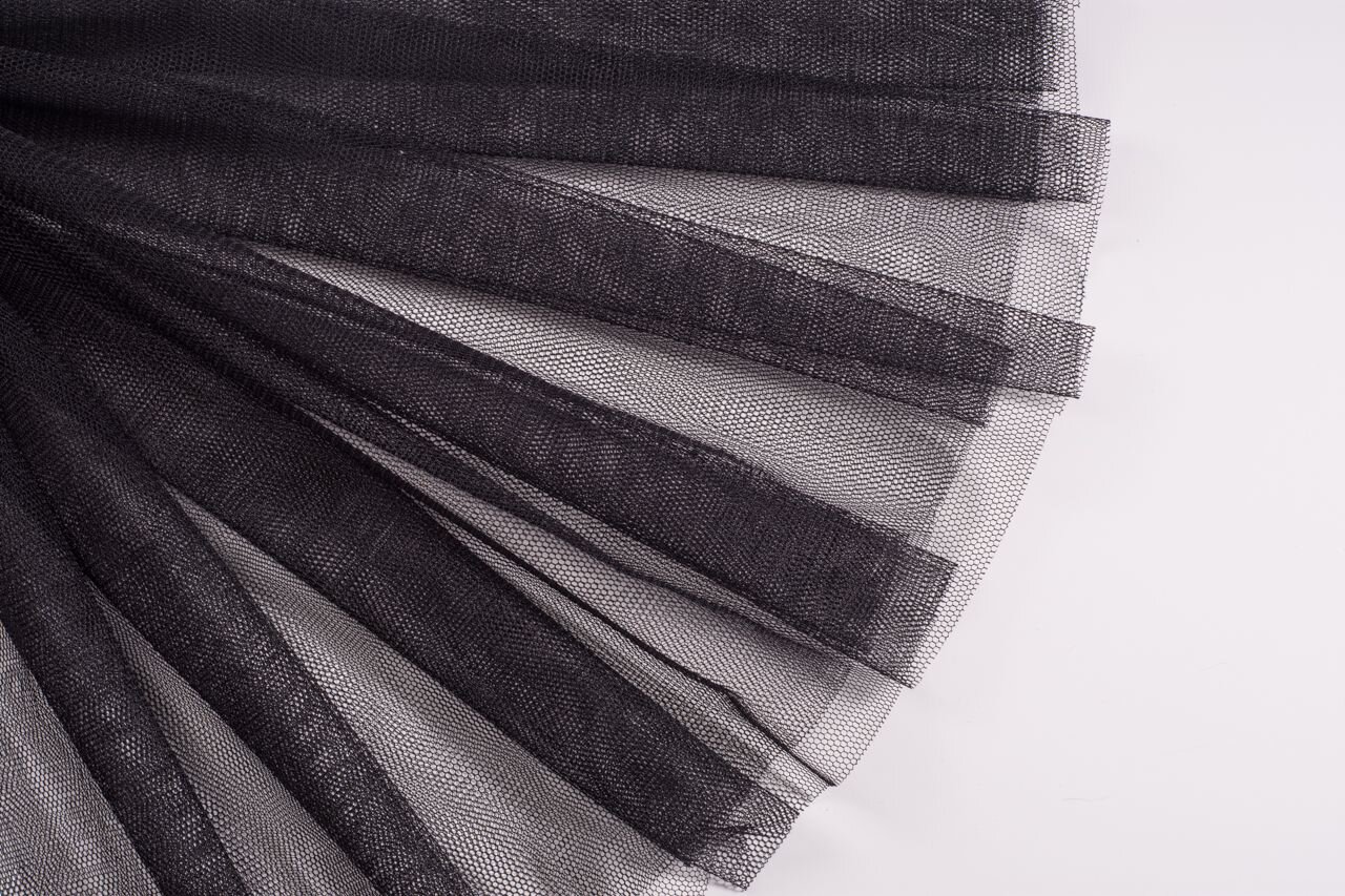 Měkký, splývavý a jemný tyl podobný hedvábnému tylu v černé barvě vhodný na romantické bohatě vrstvené tylové sukně.
