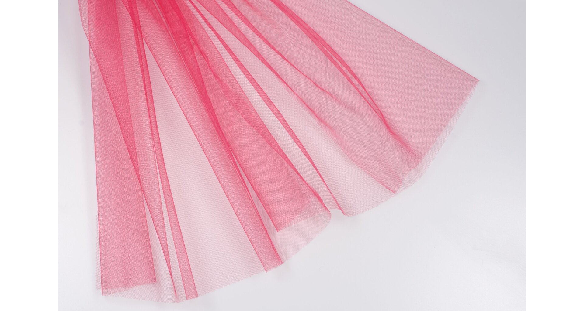 Splývavý matný jemný tyl na šaty i závoje v mimořádné šířce v růžové barvě oblíbený především jako svatební tyl na bohatě řasené závoje, ale vhodný na všechny bohatě nabírané tylové sukně.