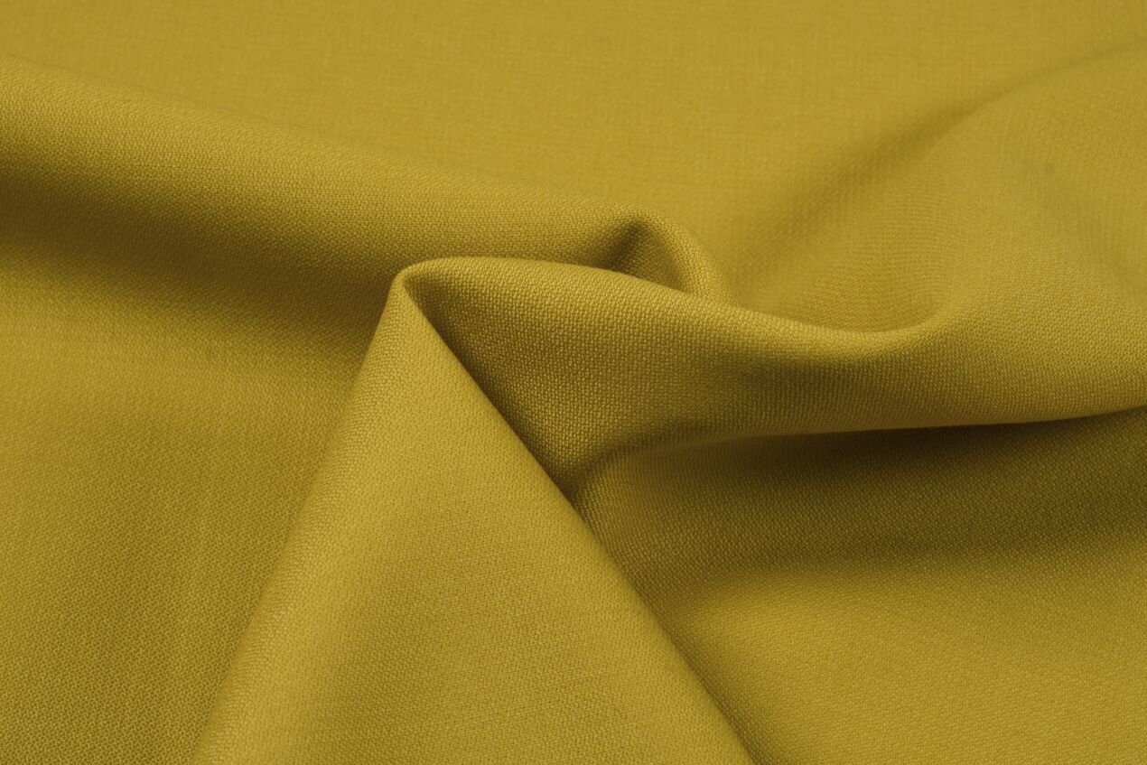 Pevná, ale lehká kostýmovka z kvalitní střižní vlny v jemné keprové vazbě v hořčicově žluté barvě. Hodí se na kalhoty, sukně nebo saka v klasickém elegantním zpracování, ale i na šaty, lehké kabátky nebo historický kostým.