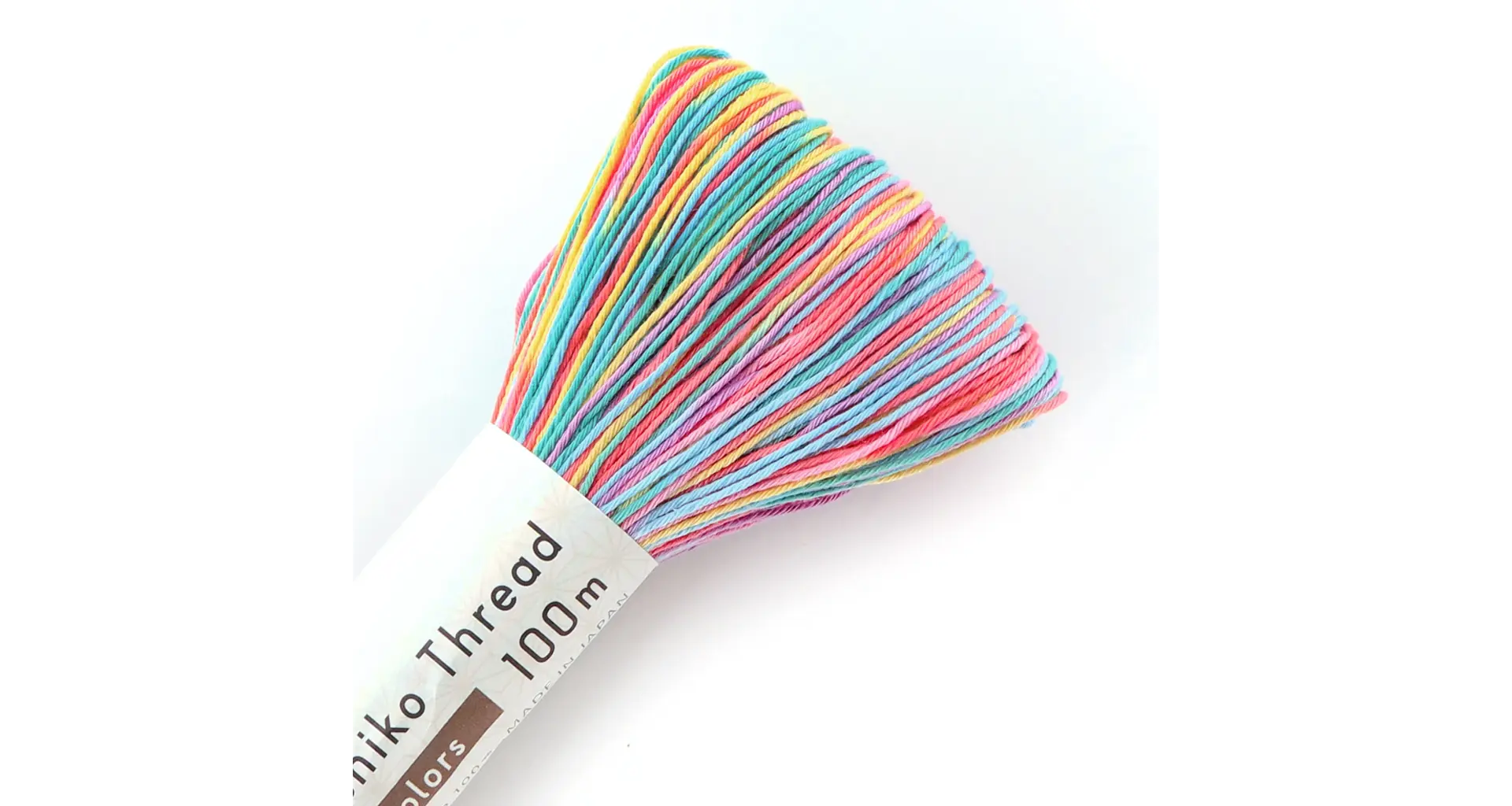 Velmi kvalitní bavlněná vyšívací příze japonské výroby, určená na japonskou techniku prošívání sashiko. Silná, pevná nit v duhových barvách.