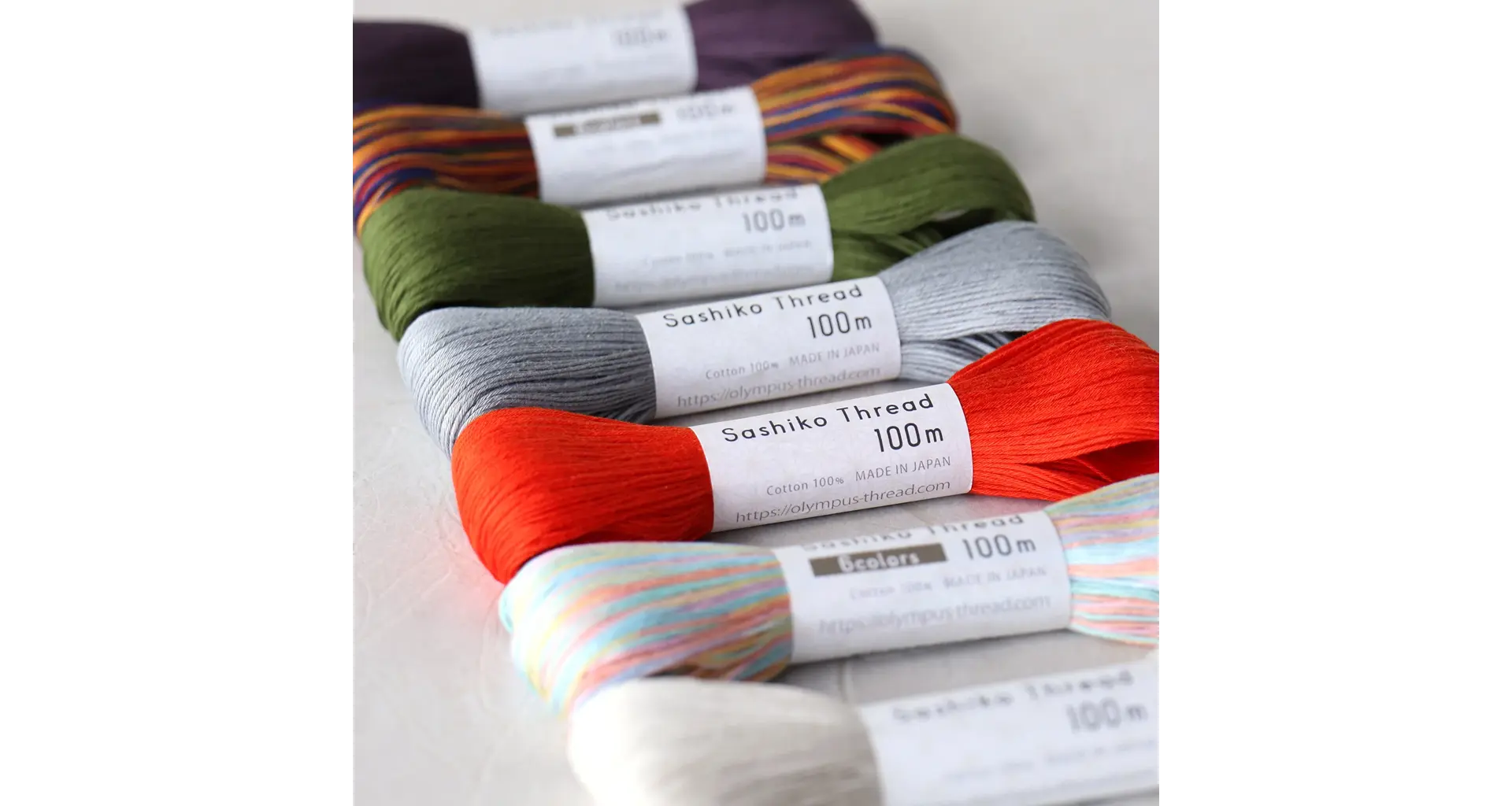 Sashiko příze ze 100% bavlny od japonské firmy Olympus. Značka Olympus je v Japonsku velmi oblíbená a platí za symbol kvality. Vyrábí nejen tradiční látky a nitě, ale také nitě v moderních pastelových barvách nebo sady na sashiko tvoření.
