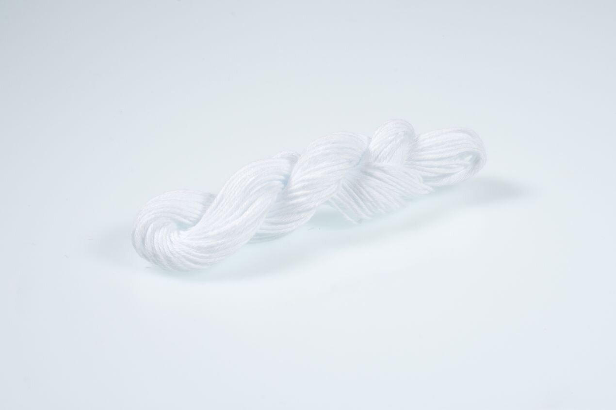 Velmi kvalitní bavlněná vyšívací příze japonské výroby, určená na japonskou techniku prošívání sashiko. Silná, pevná nit ve studeném odstínu bílé.