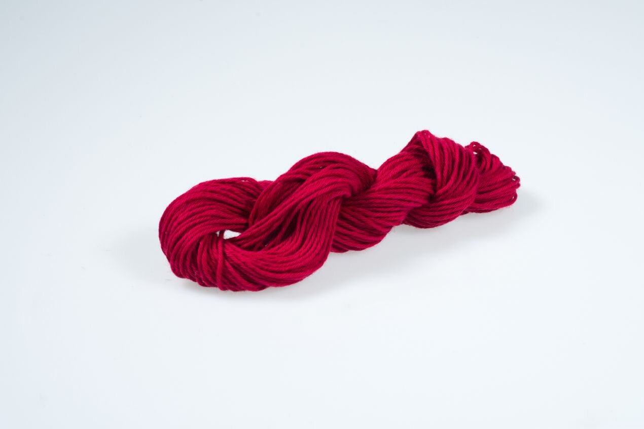 Velmi kvalitní bavlněná vyšívací příze japonské výroby, určená na japonskou techniku prošívání sashiko. Silná, pevná nit v rudé barvě.