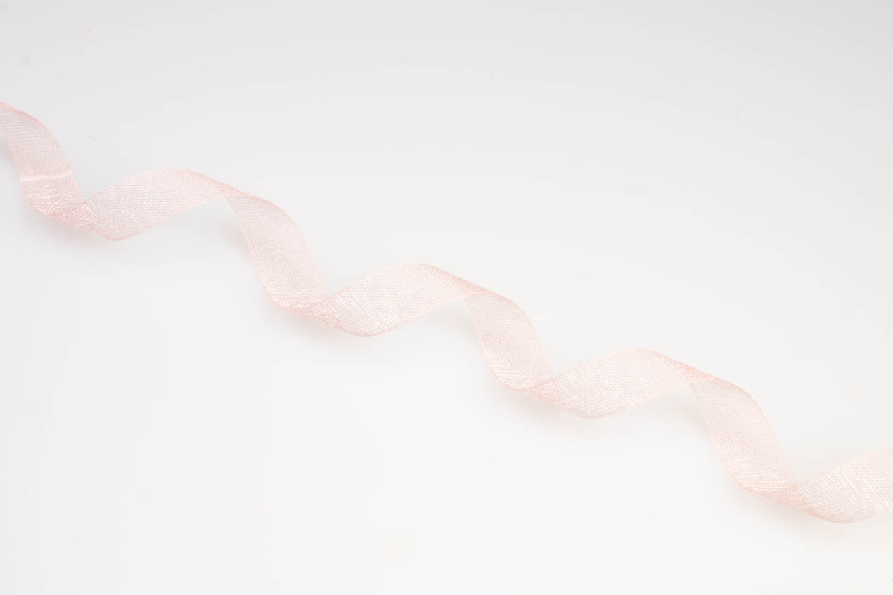 Wstążka wykonana z mieszanki jedwabiu i włókien sztucznych. Nadaje się do ozdabiania ubrań i akcesoriów, kostiumów, haftu wstążkowego i drobnych dekoracji.